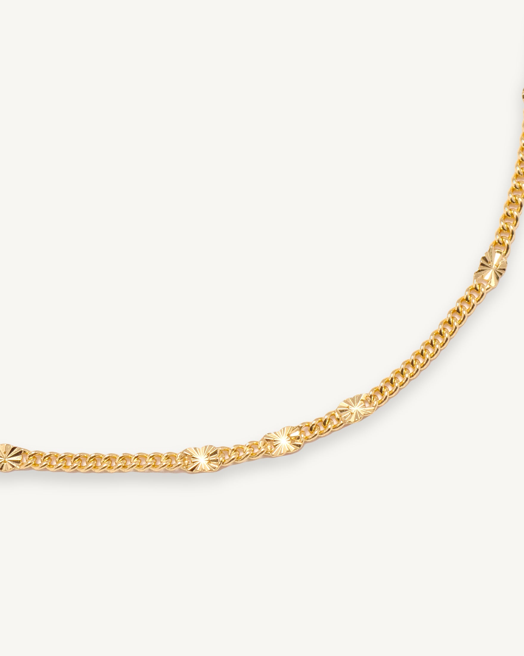 晨光微微照落的片刻,Luce 以細緻的古巴鍊為基底,搭配帶有壓紋感的閃片鏈條,步伐之間灑落溫柔光芒。